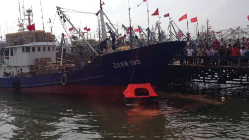8月29日,大连市甘井子区农林水利和海洋渔业局在辽渔集团码头举行了“2013年度海上应急救援演练”,700多名船东、船长及渔民参加了此次应急救援演练活动。 此次演练活动中船用救生筏使用演练的产品系我司渔用筏产品。 现场活动瞬间