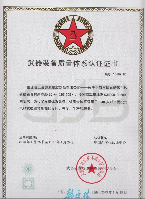 公司于2011年申请GJB体系换证申请,2012年5月取得B版证书。且于2012年申请综合评议,2013年2月取得新证书。