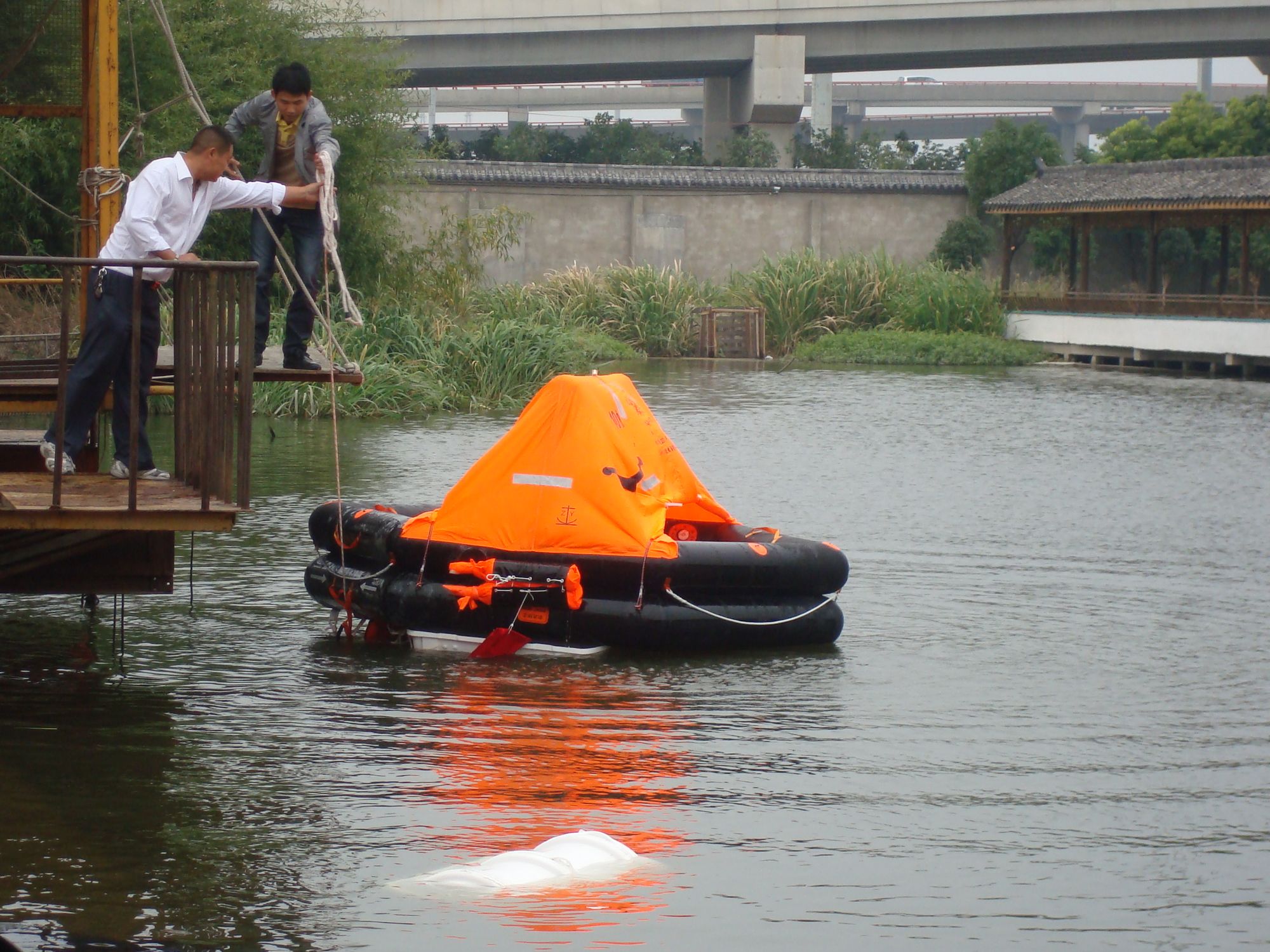 (各位同仁观看救生筏抛投试验)